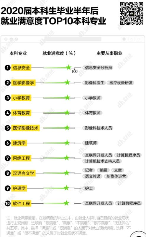 比如小學教育、漢語言文學,都進入了本科生畢業(yè)半年后職業(yè)滿意度排行榜前10名,分別排在第3和第8。